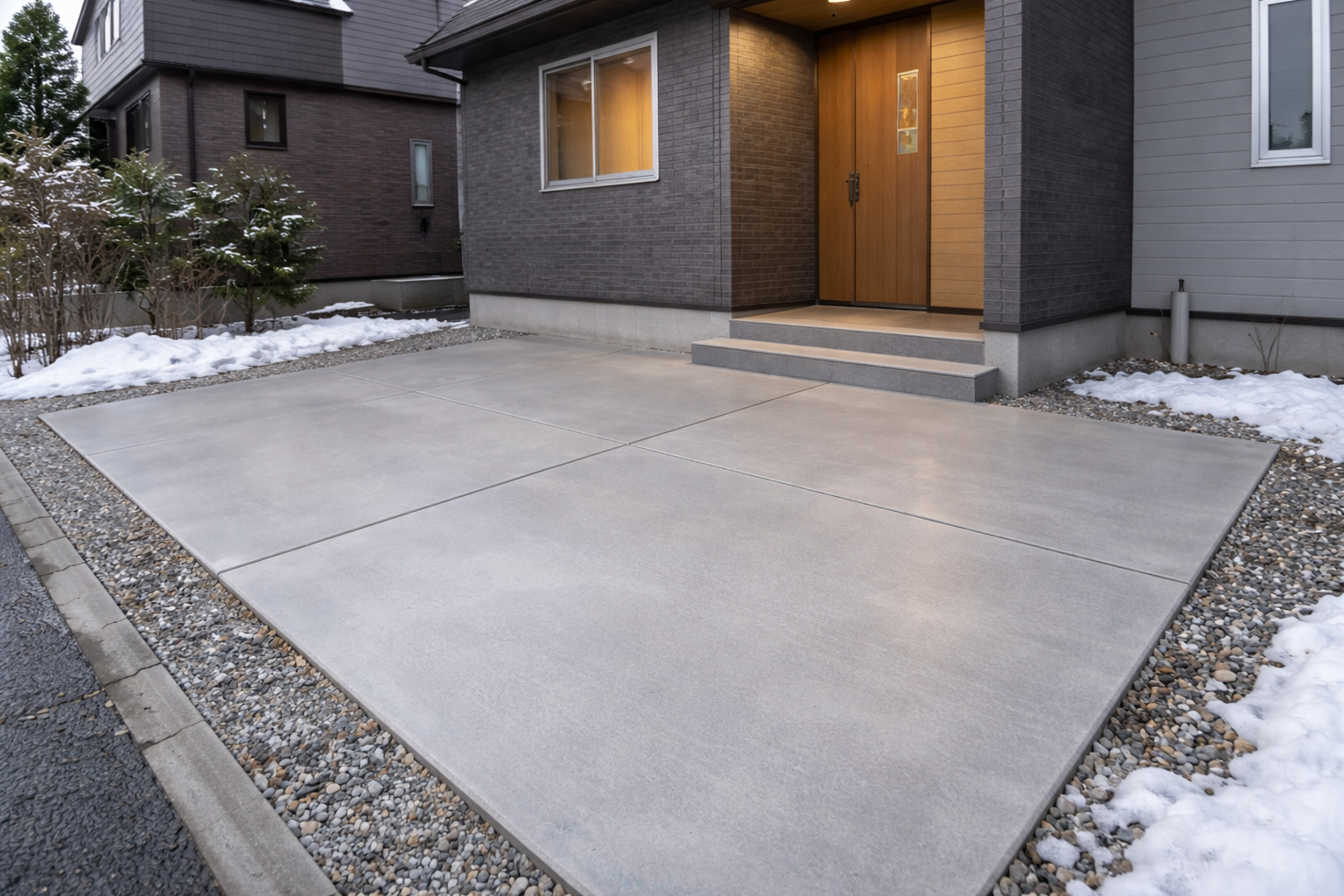 冬も安心して使える強度設計で、駐車場やアプローチの施工を行います。